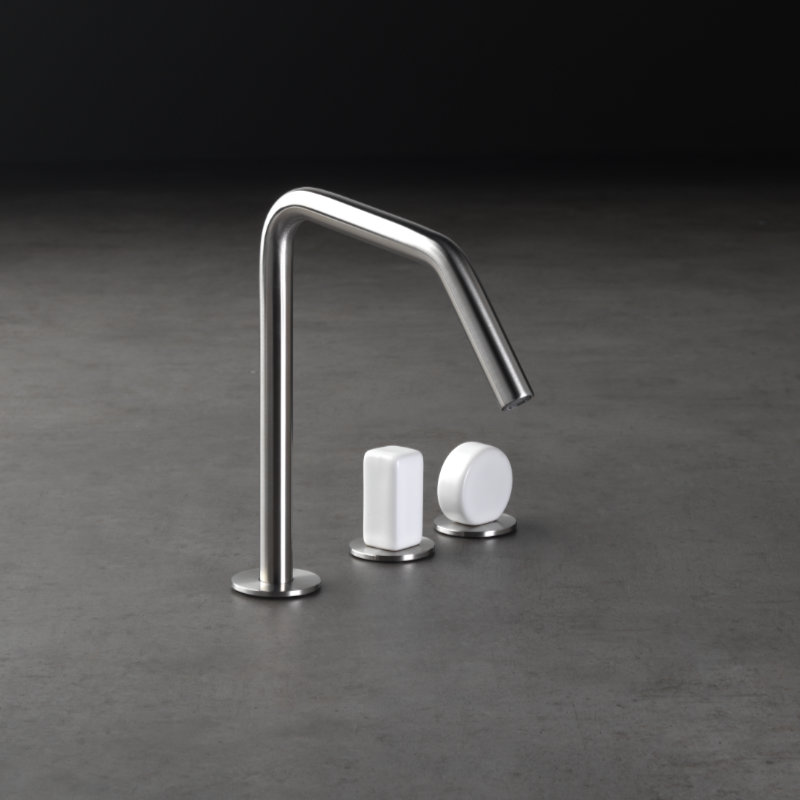 Здесь керамика, представленная в белом, черном и красном цветах, идеально сочетается с нержавеющей сталью AISI 316 / L, имеет сатиновую, глянцевую отделку и три цвета PVD: Carbon Black, Gold и Pink Gold.