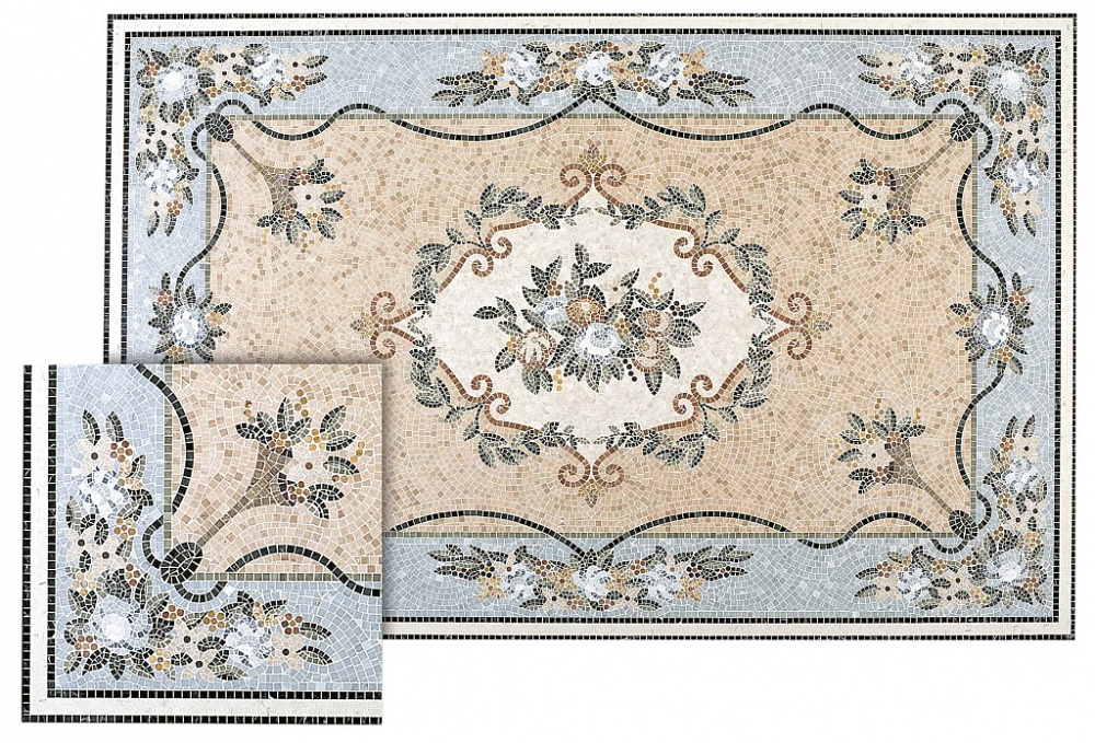 Мозаичные основы более 100 различных форматов, которые могут быть выполнены из одноцветного мрамора или объединены на любой вкус и потребности.
