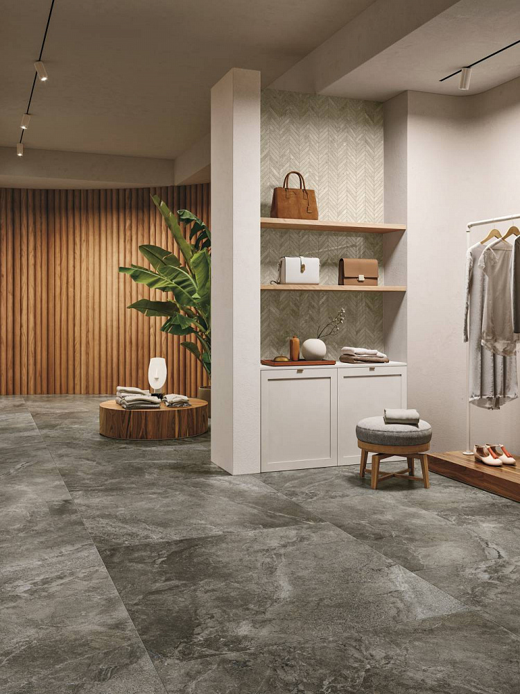 Регенерирующая сила воды входит в повседневную жизнь, создавая диалог между природной вселенной и внутренним измерением. Коллекция вдохновлена эрозионным действием воды: там, где появляется камень, остается текстурированный и структурированный эффект; там, где он погружен, он сглаживается и смягчается на контрастах, приобретая более нежный и элегантный вид.